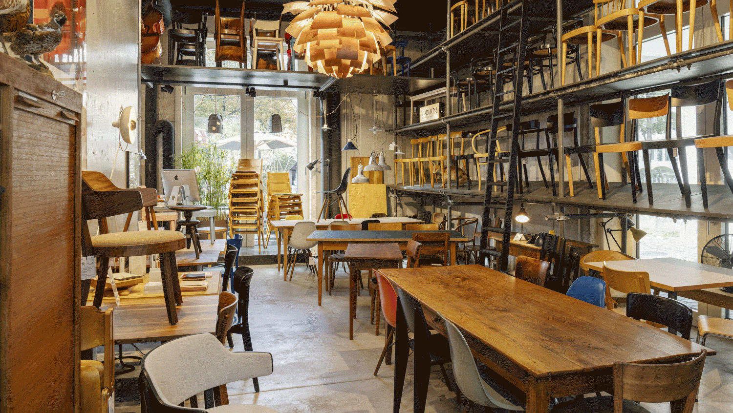 Viadukt*3 ist der Spezialist für antike und neue Holztische und Holzstühle. Hierzu gehört eine breite Vielfalt an Beizenstühlen, Biedermeiertischen sowie neu produzierten Massivholz-Klassikern von horgenglarus und Thonet.