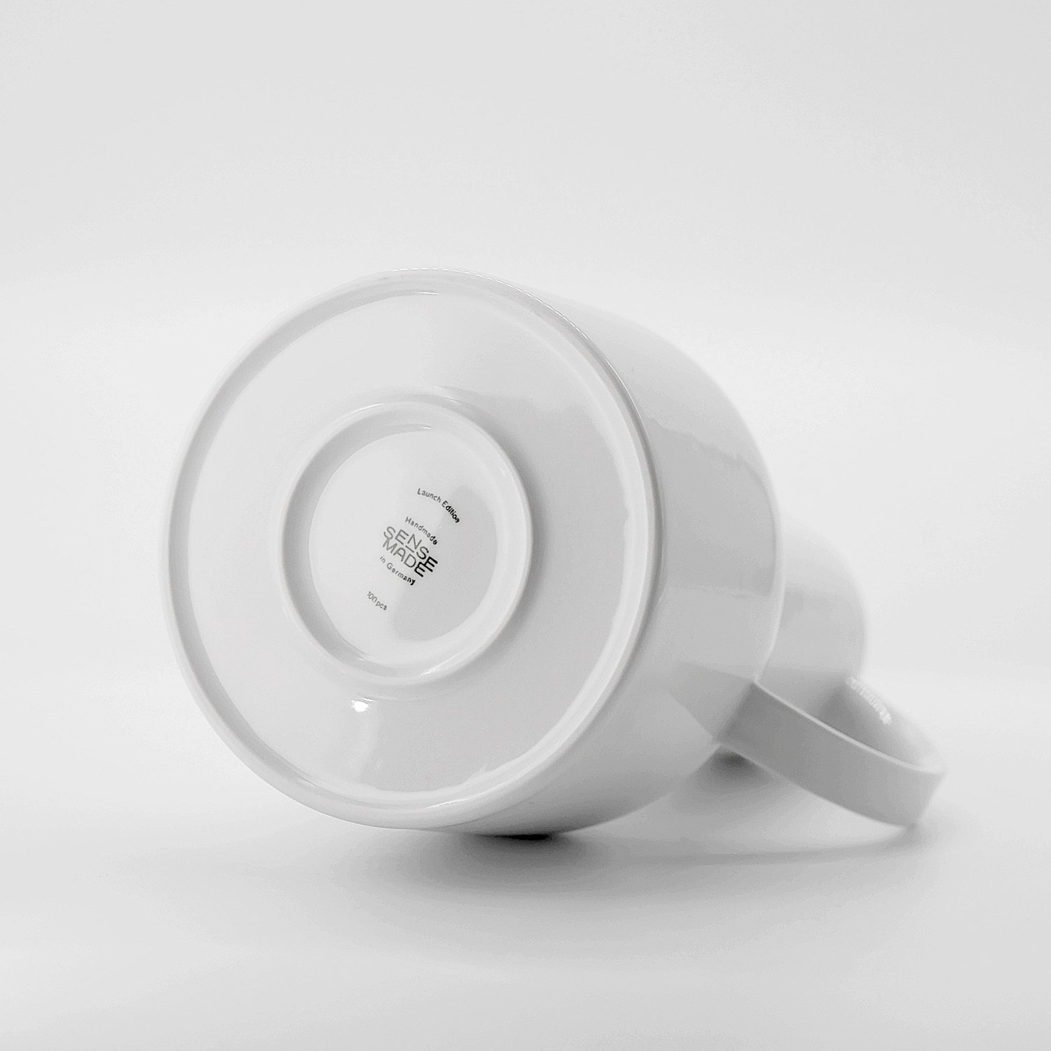Limitierte Launch-Edition 100 Stück mit speziellem Bodenstempel. Von Hand gefertigt. Material aus weissem Porzellan mit transparente Glasur. Geeignet für den Geschirrspüler und die Mikrowelle.