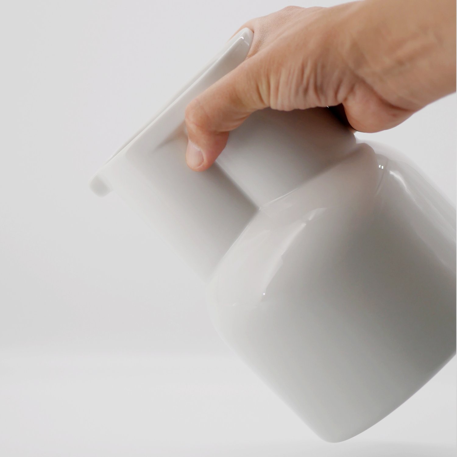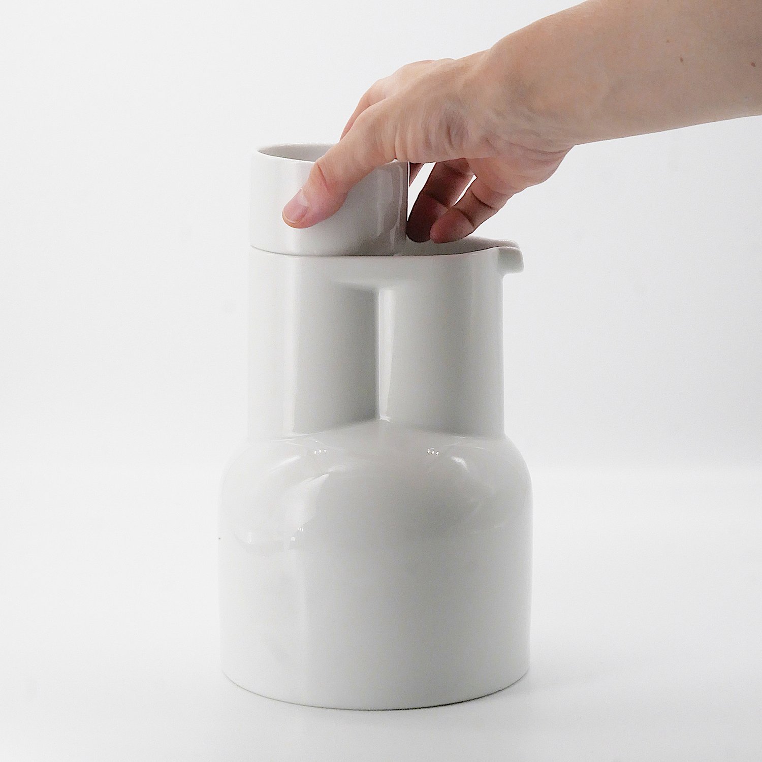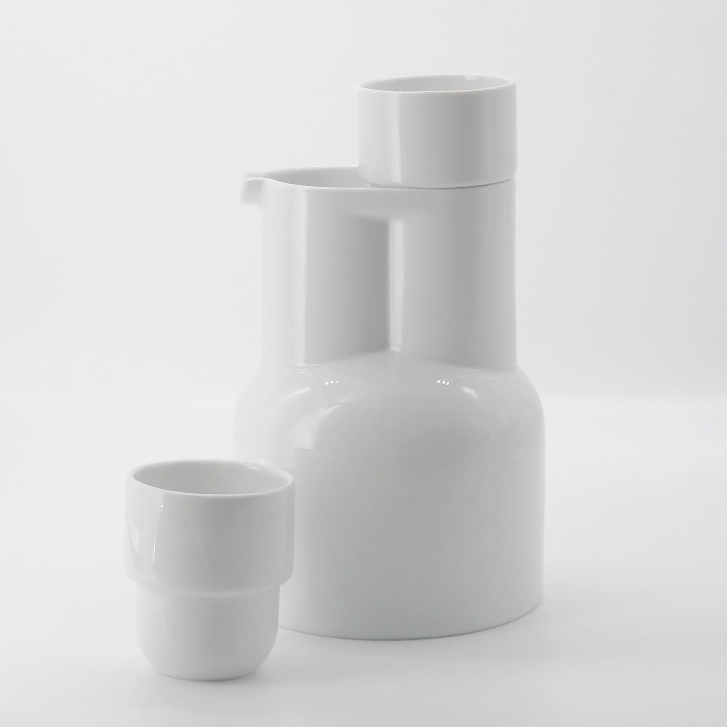 Krug ohne Henkel aus feinstem Porzellan. Der Jug funktioniert gut alleine und perfekt zusammen mit dem stapelbaren Cup und kann auch als schöne Vase verwendet werden.