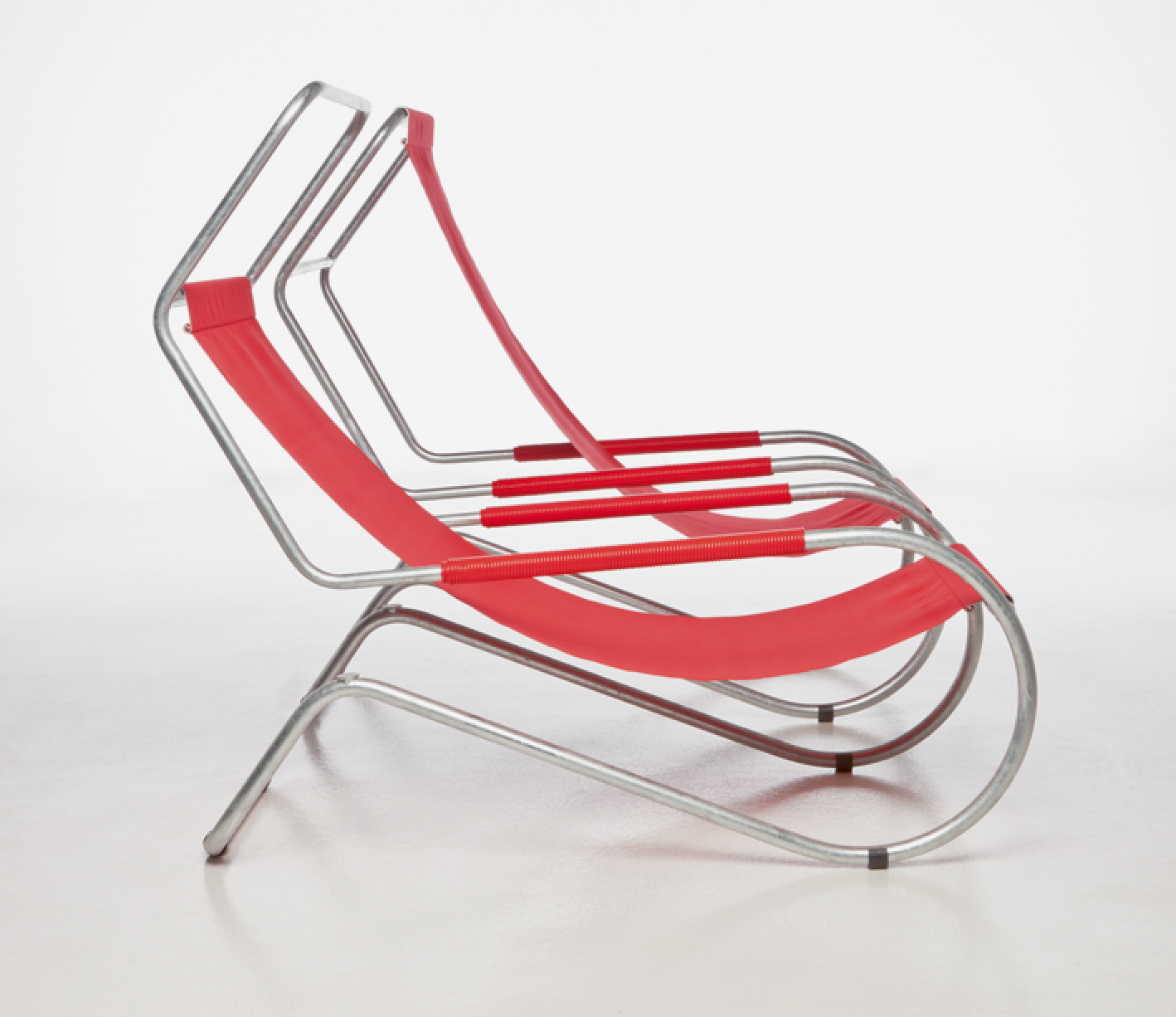 Der für das Lido von Locarno entworfene Freischwinger gehört