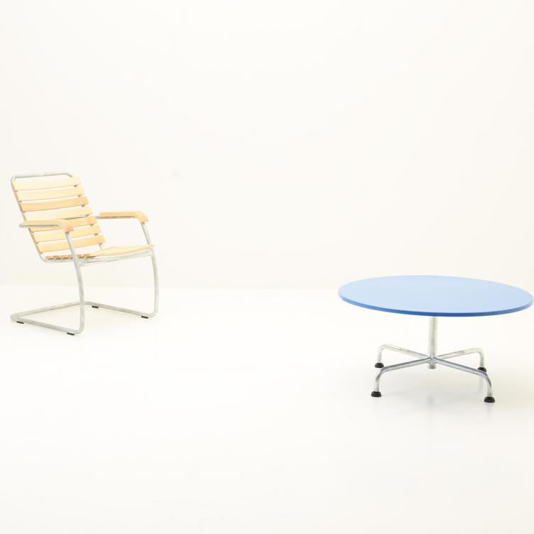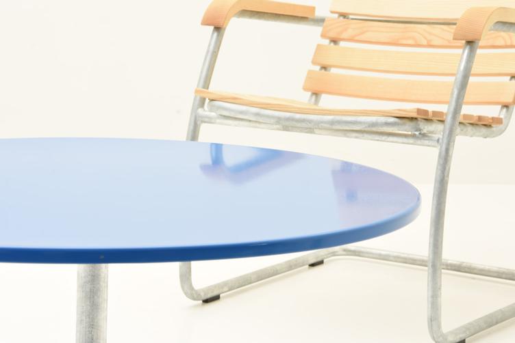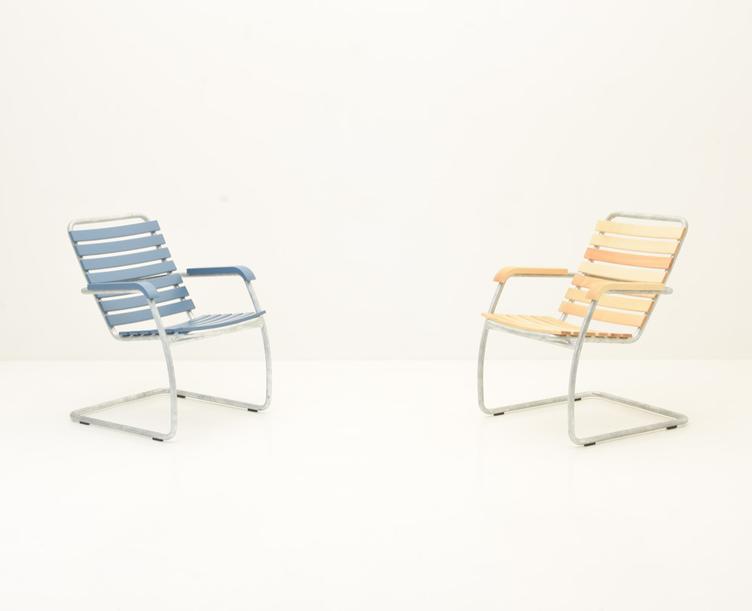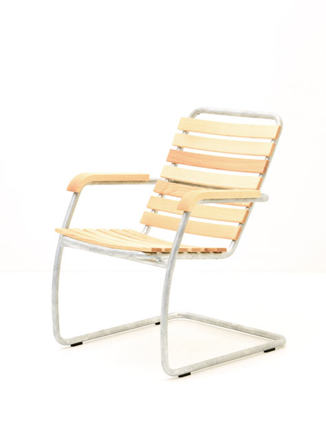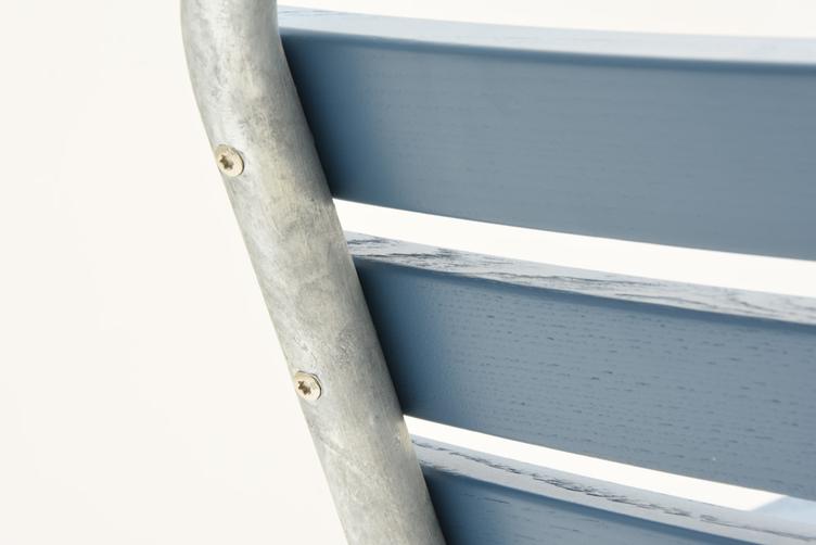 Dieser Gartensessel mit feuerverzinktem Untergestell und Latten in Eschenholz natur imprägniert oder farbig lackiert präsentiert sich wunderbar im naturnahen Garten.