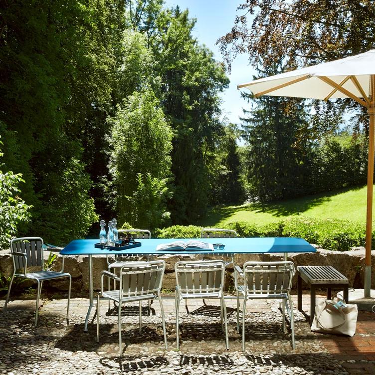 Mit diesem Gartenstuhl Modell entwarf Max Ernst Haefeli im Jahr 1938 einen zeitlosen Begleiter zu seinen klassischen Gartentischen und eine formschöne Sitzgelegenheit für den privaten wie auch für den öffentlichen Bereich.