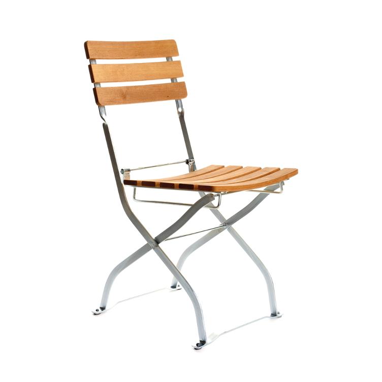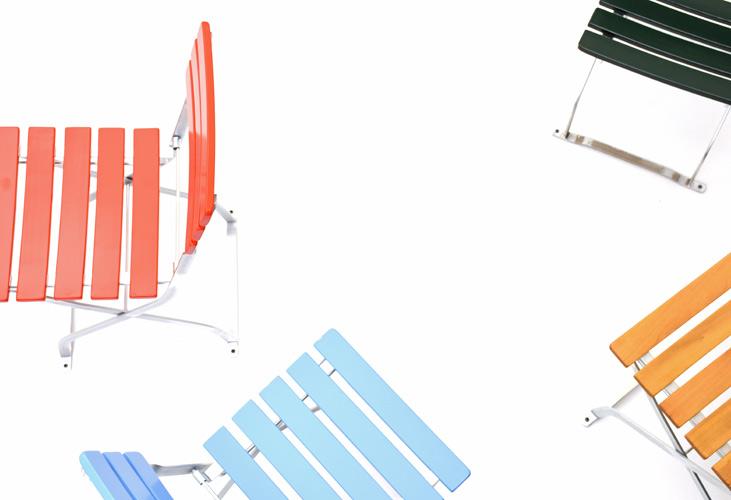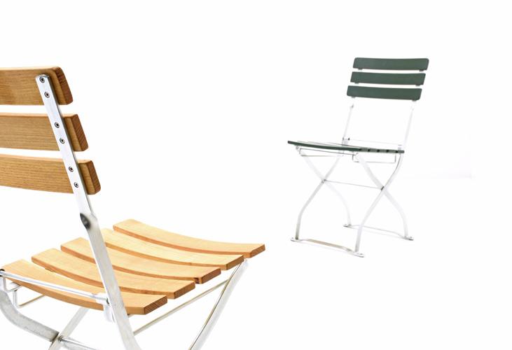 Der klappbare Manufakt Stuhl - auch bekannt als Biergarten Klappstuhl München-3 - ist sowohl im Garten genauso wie in der Küche ein begehrter Sitzplatz. Mit den Holzlamellen und dem leicht geschwungenen Eisengestell ist er funktional und verspielt zugleich.