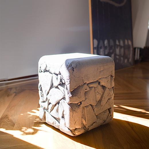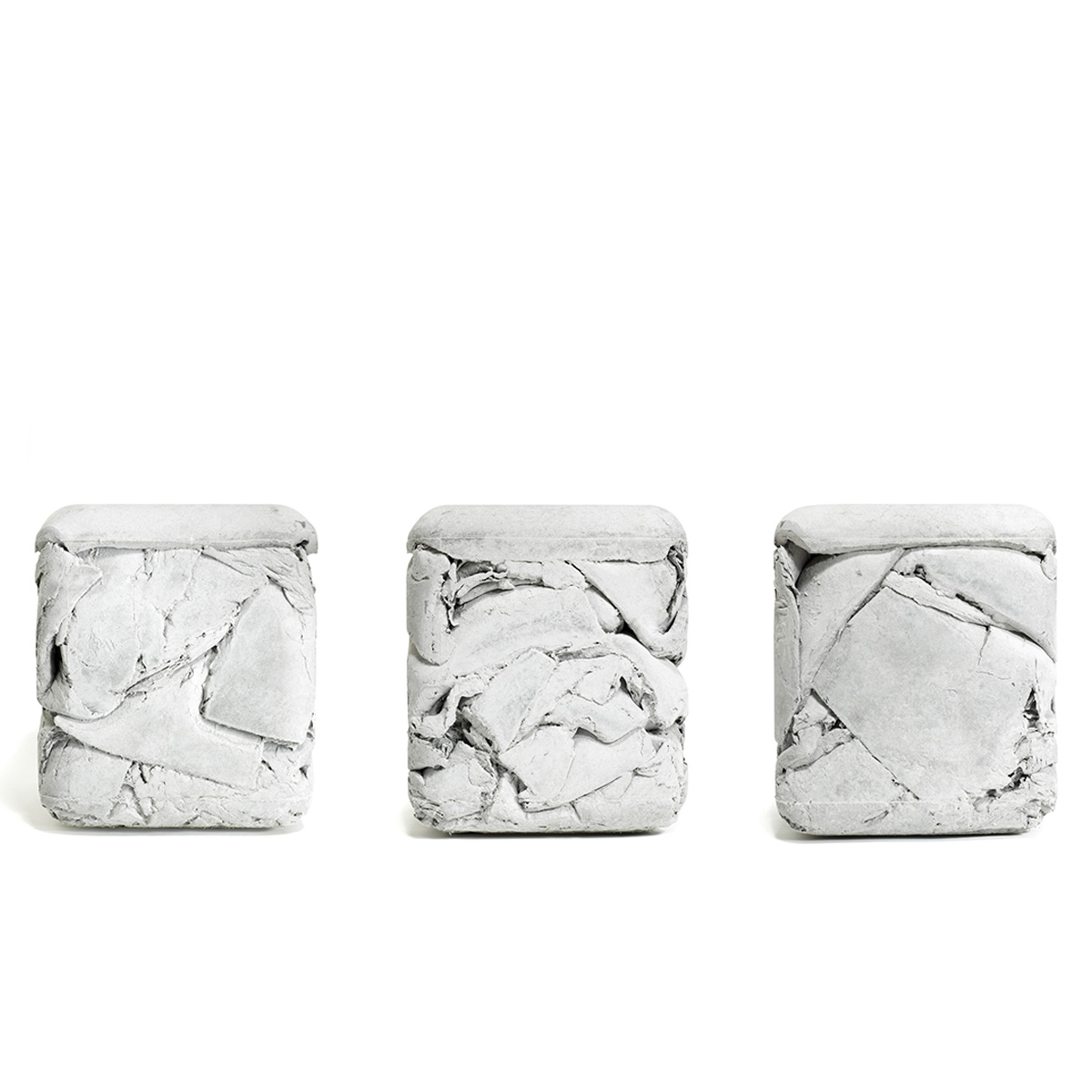 Bei der Fertigung der Garten- und Designobjekte entsteht in der Manufaktur von Eternit Abfall. Im Trash Cube findet er ein neues Leben. Dabei werden die Verschnitte und Reste als Hocker oder als Beistelltisch in Form gebracht. So ist jeder Trash Cube ein Unikat.