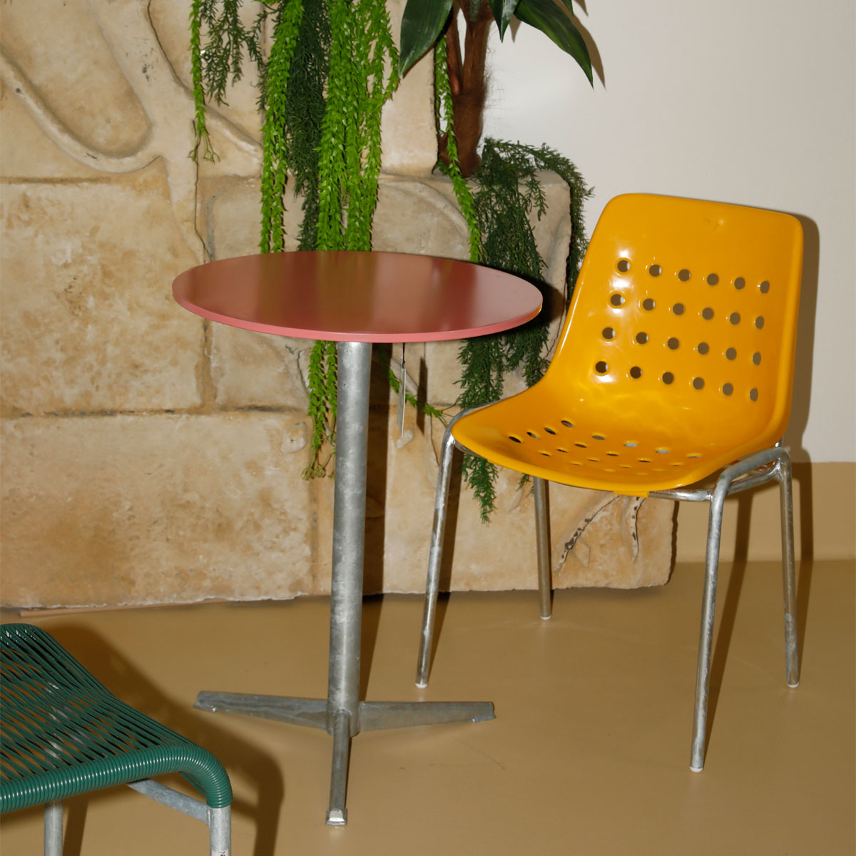 Dreibeiniger, verzinkter Unterbau.
