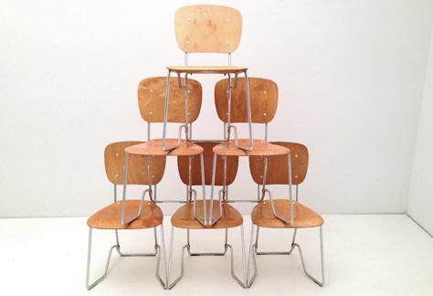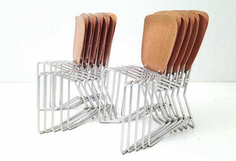 Alu-Flex Stapelstühle, Entwurf 1950, Aluminium, Buchenschichtholz, sehr guter Zustand, Mehrere Stk an Lager. <br>