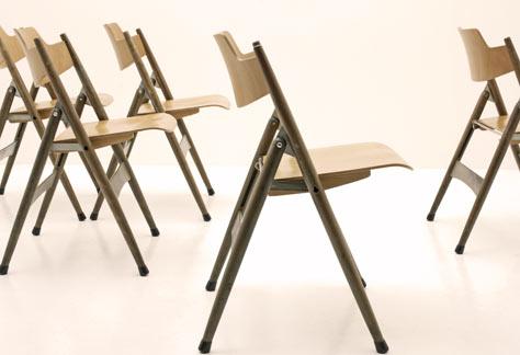 Entwurf um 1952, Klassiker der Klappstühle, hier in einer zweifarbigen Ausführung. <br>