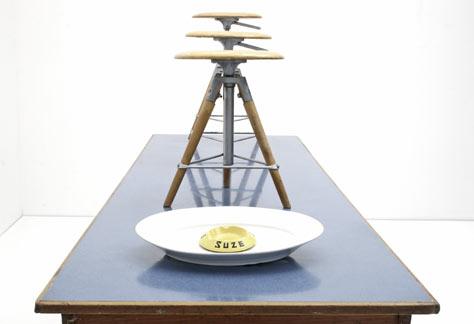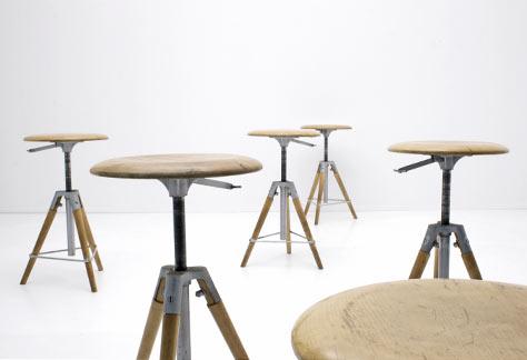 Höhenverstellbarer Hocker, schweizer Herstellung. Gutes "Industriedesign".