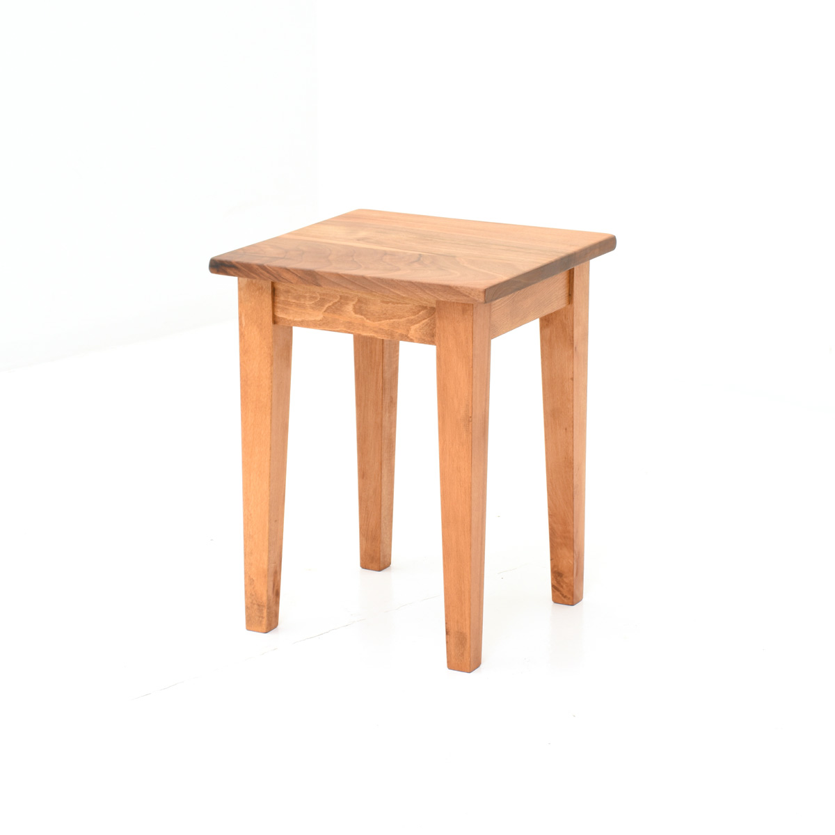 Sitzfläche aus Nussbaum, Unterbau aus Buchenholz, geölt.