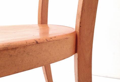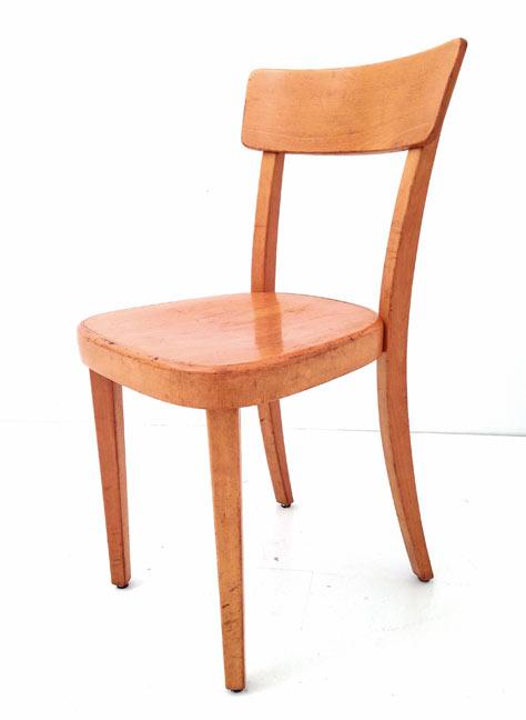 Holzstuhl vermutlich von Horgen Glarus produziert. <br> Sitzfläche eingeleimt mit einer schmalen, massiven Rückenlehne.