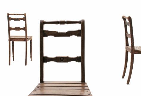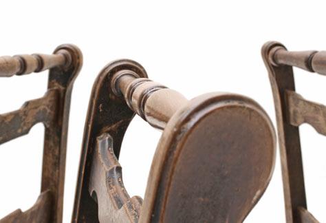 Holzstuhl aus der vorletzten Jahrhundertwende .