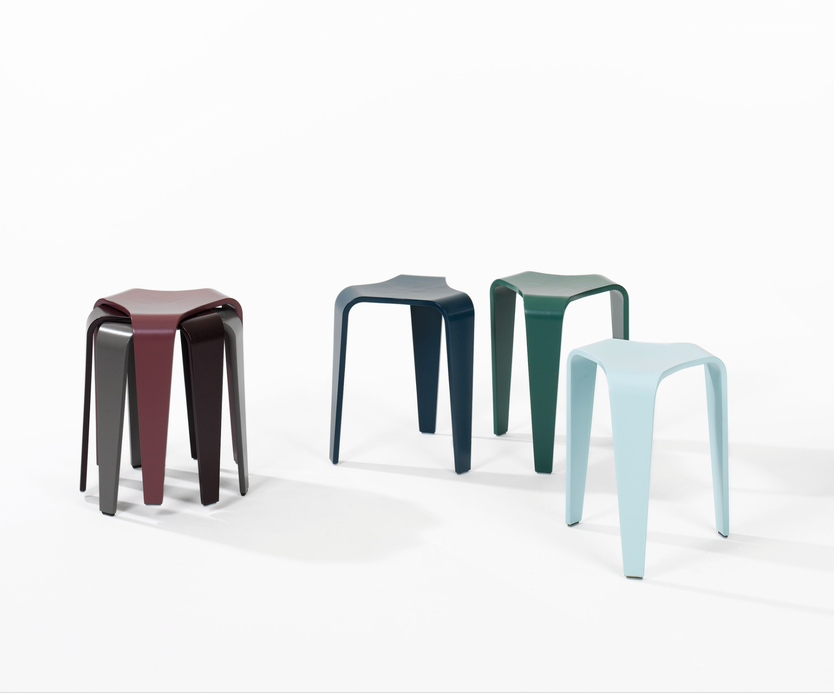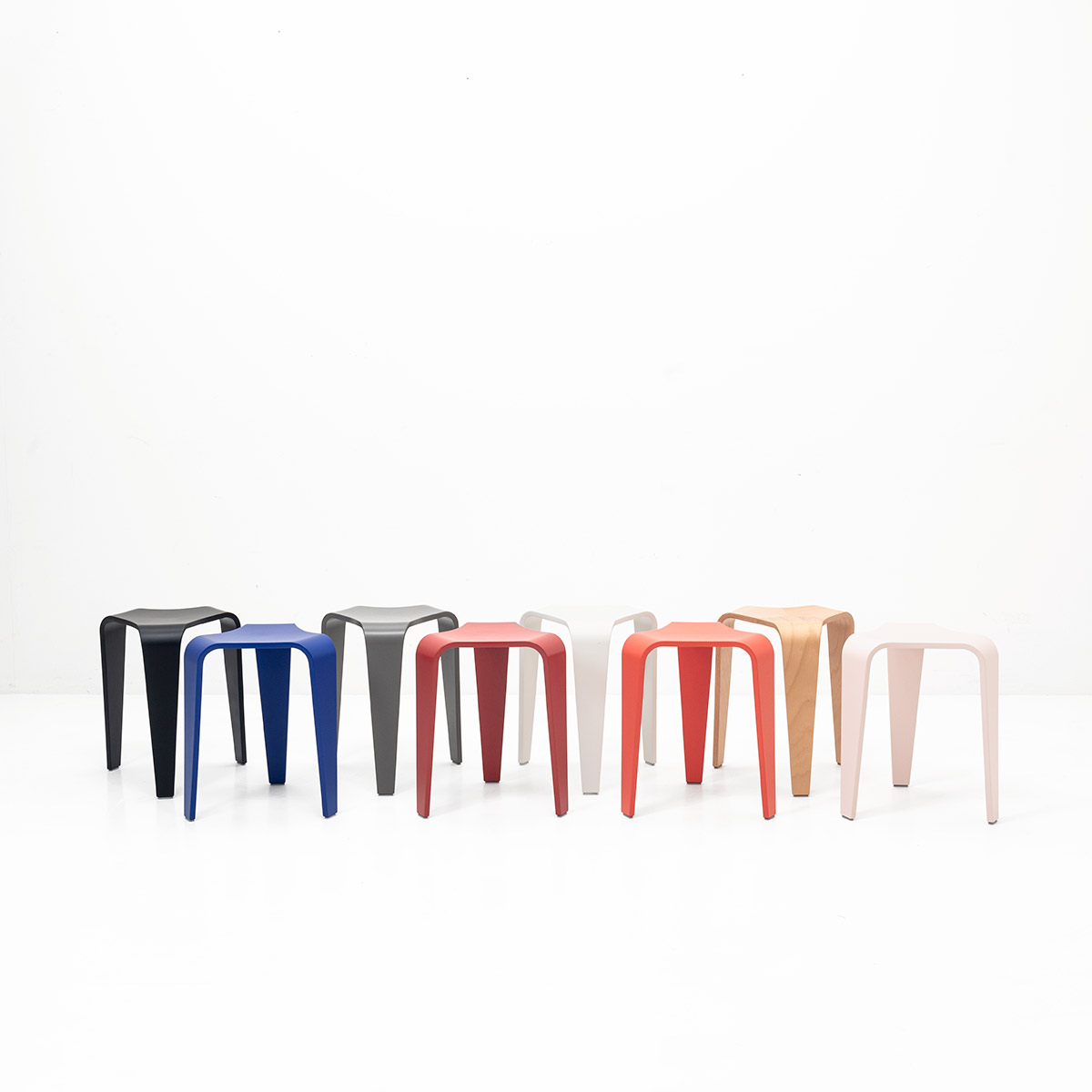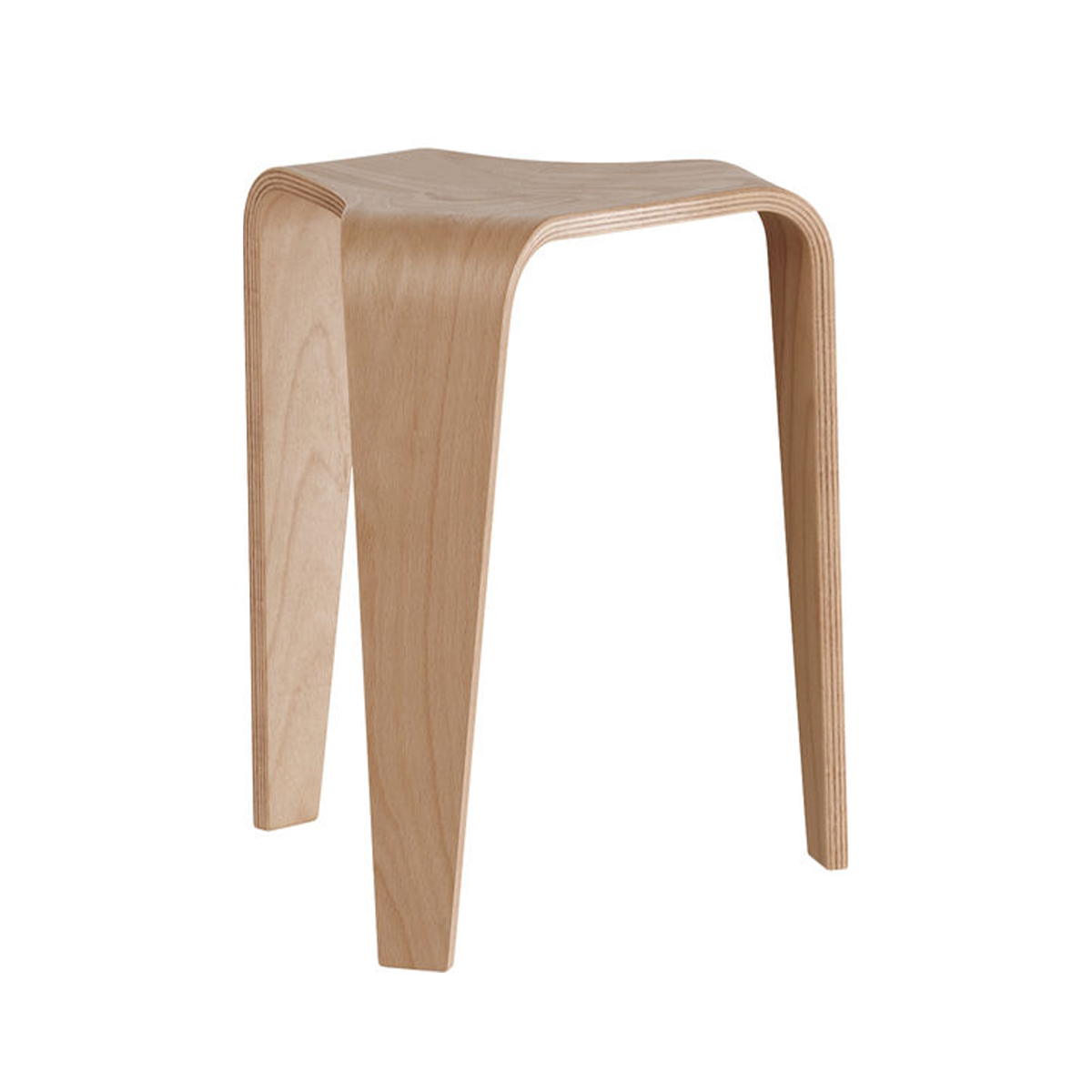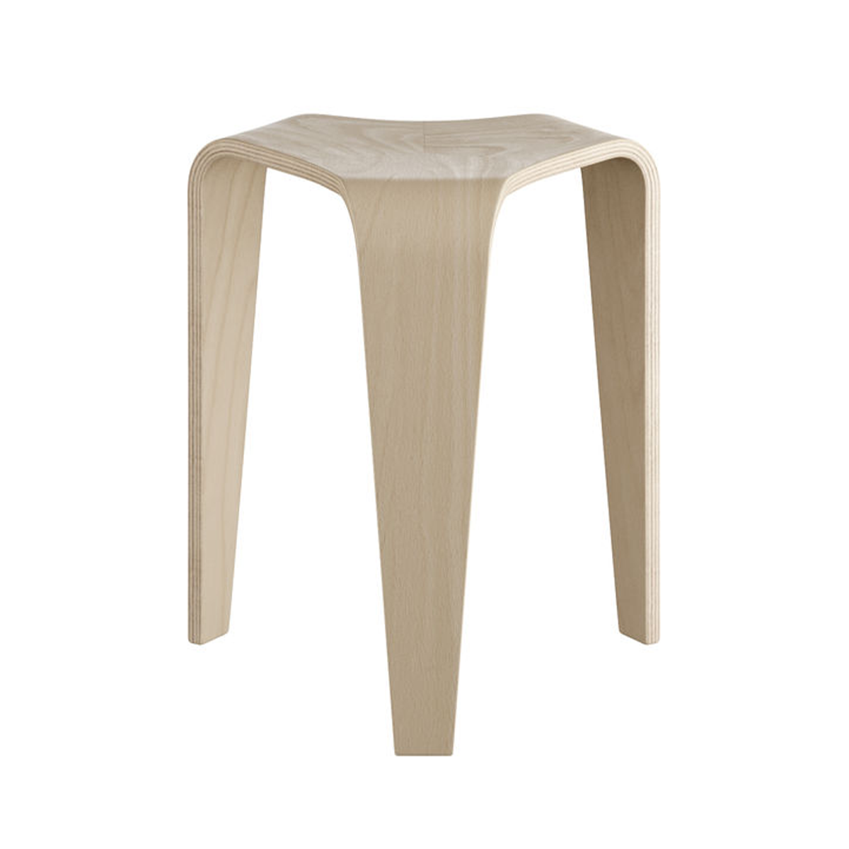 Der formschöne, dreibeinige Hocker aus Buchen-Formsperrholz von Michel Péclard ist ein Entwurf von 1960 und wird von horgenglarus hergestellt. Stapelbar und in Buche Natur sowie