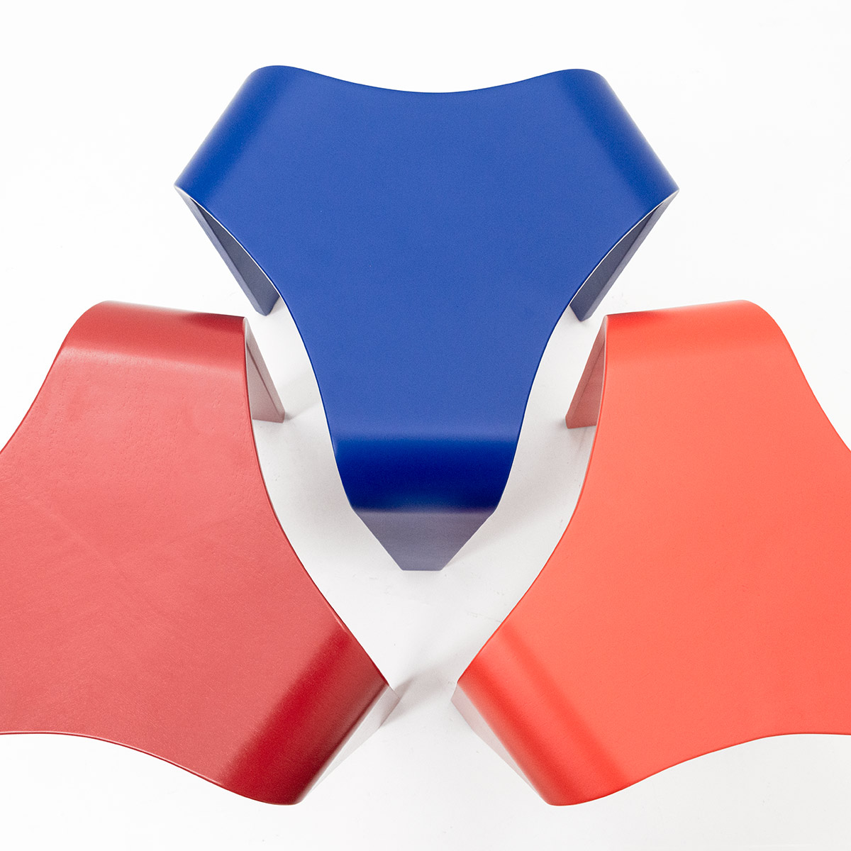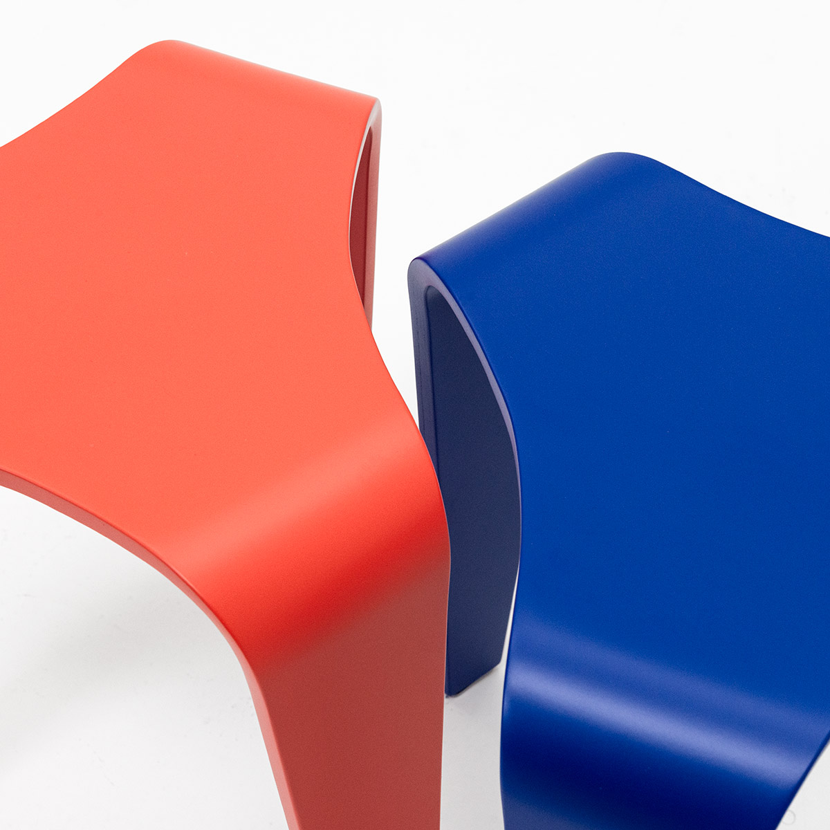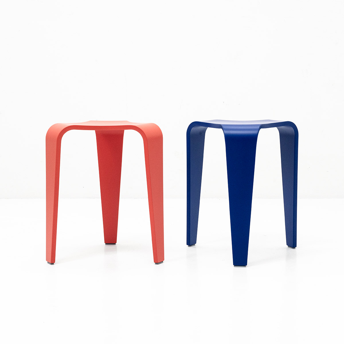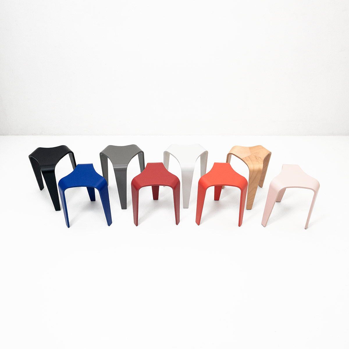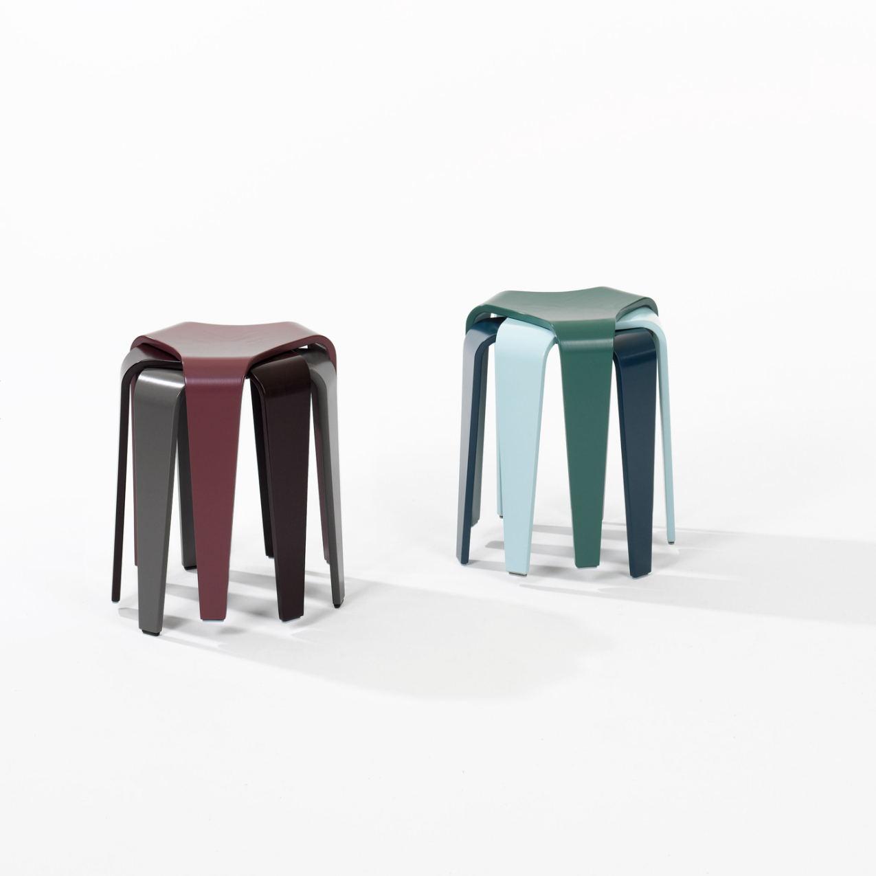 Der formschöne, dreibeinige Hocker aus Buchen-Formsperrholz von Michel Péclard ist ein Entwurf von 1960 und wird von horgenglarus hergestellt. Stapelbar und in Buche Natur sowie