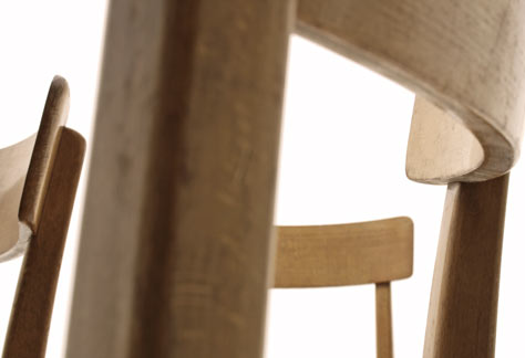 Buchholz gebeizt und lackiert. Dieses Modell hat eine schmalere Rückenlehne als gewohnt.