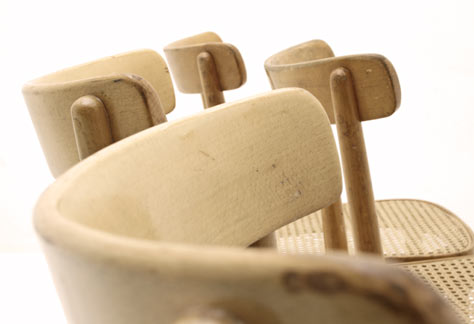 Buche nature lackiert, Sitzfläche mit Jonc-Geflecht.