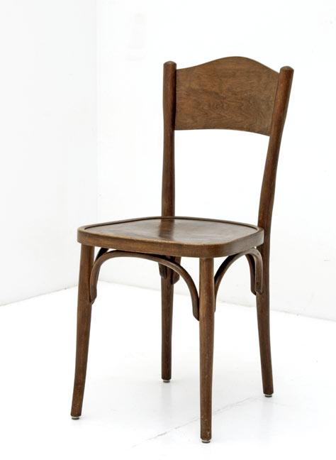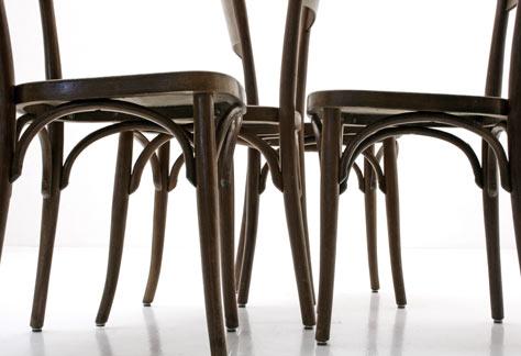 Bugholzstühle mit geschwungener Sperrholz-Rückenlehne.<br>
