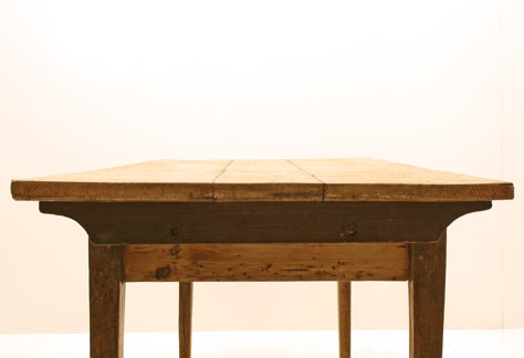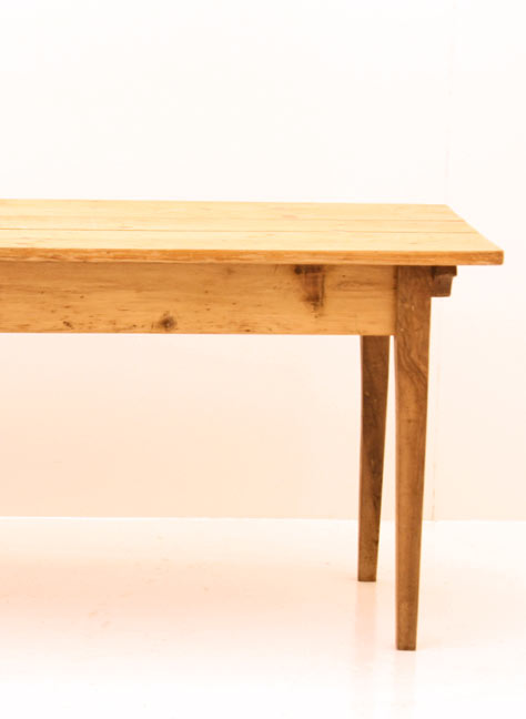 Bauerntisch, abgelaugtes Tannenholzdeckblatt mit Nussbaumbeinen, lasiert. <br>