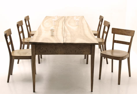 Deckblatt aus nur 2 Riemen. Zargen mit Nusswurzelholz verkleidet. <br>