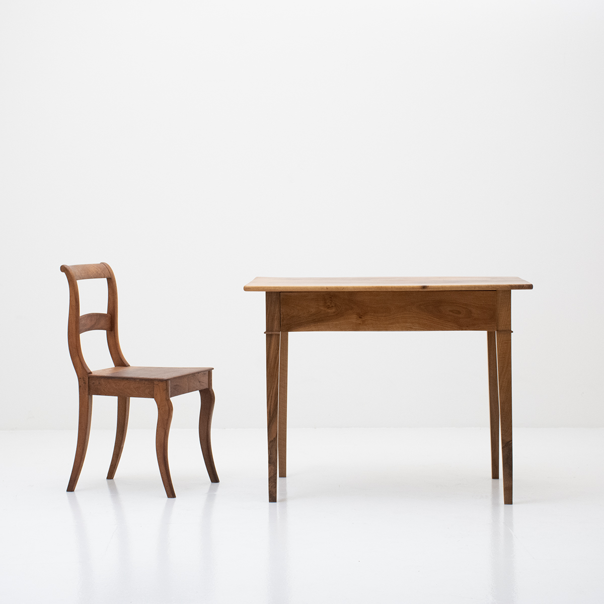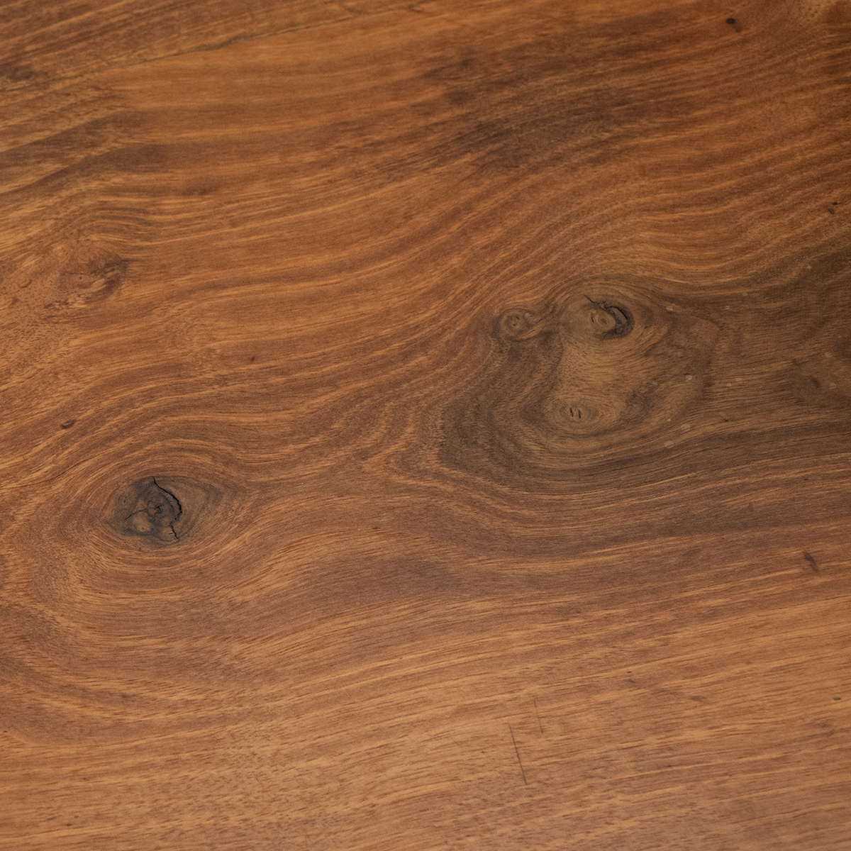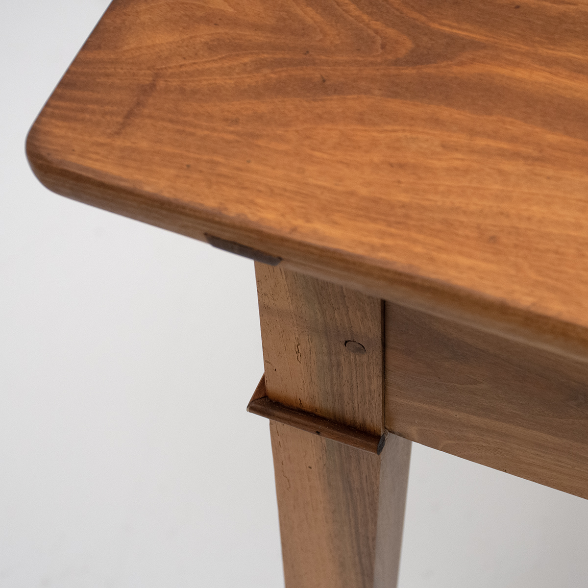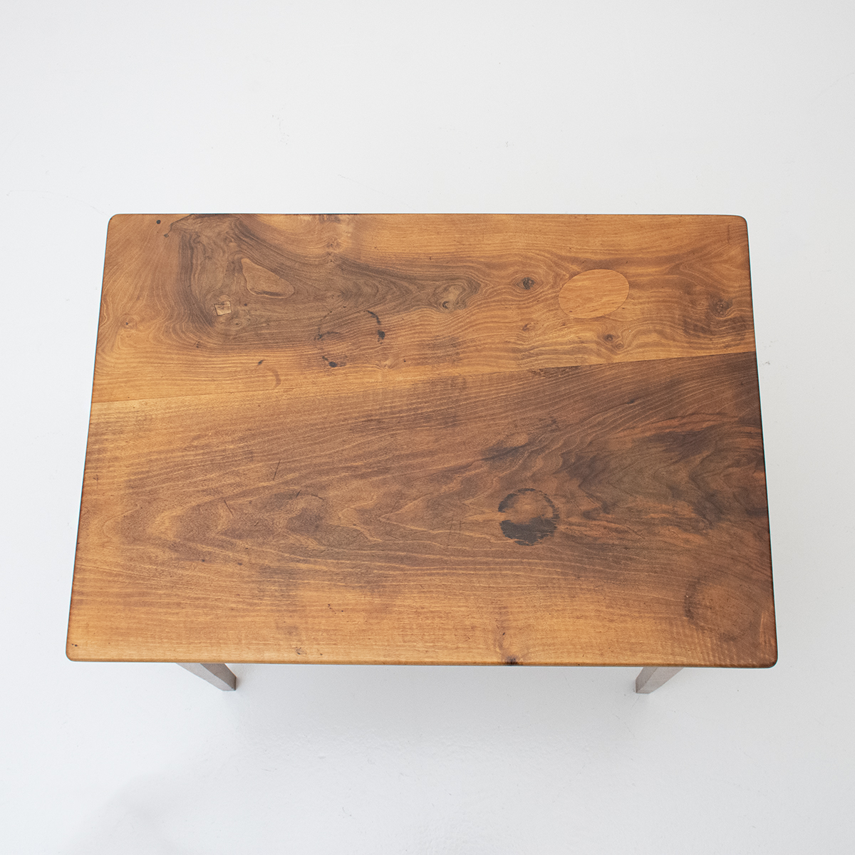 und Patina in Nussbaum. Tischplatte aus nur zwei breiten,