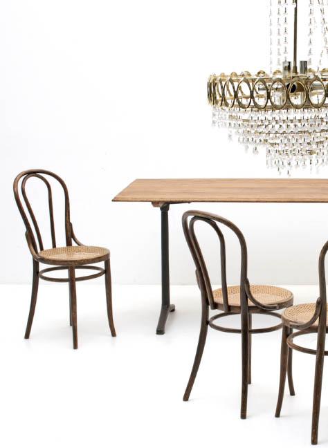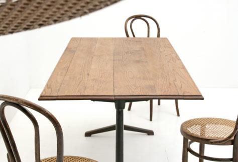 Sehr schöner gebrauchter Bistrotisch mit edler Patina in warmer Farbe des Eichenholzes.