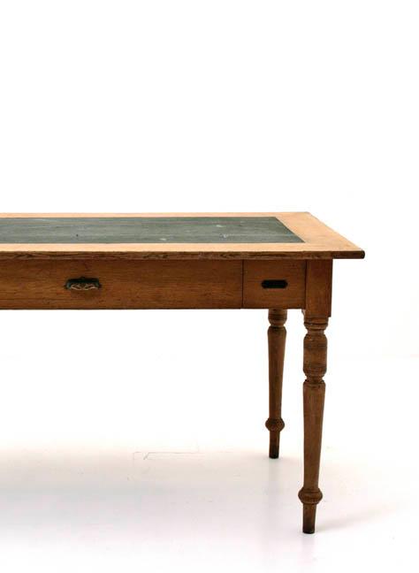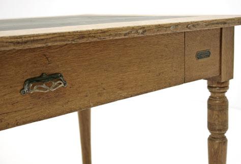 Eichentisch mit eingelassenem Linoleum und grosser Schublade.<br>