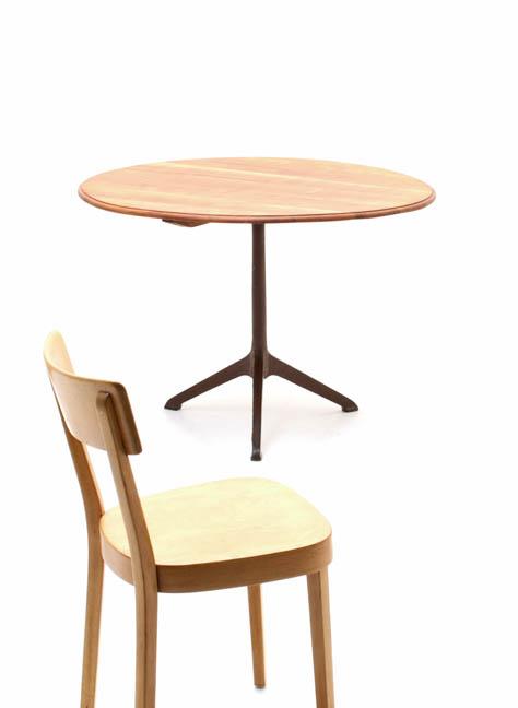 Schlichter und eleganter, runder Bistrotisch aus Kirschholz.