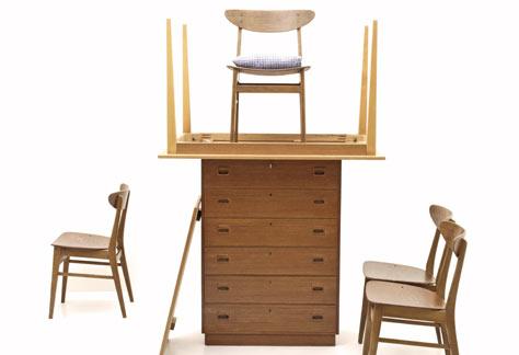 Bei den dänischen Farstup Stühlen wurde die Kunstledersitzfläche entfernt und die Holzsitzschale angepasst. 4er Set. 220.-/Stk.