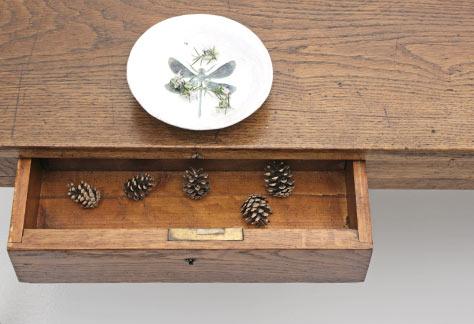 Grosser Eichentisch der späten Biedermeierzeit. 4 Schubladen und 6 Beine bestücken diese grosse Tafel. Trouvaille aus dem Val du Travers, Suisse Romandie.