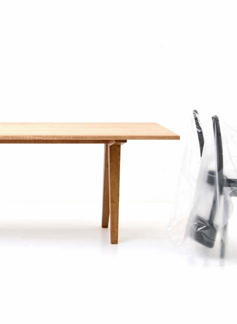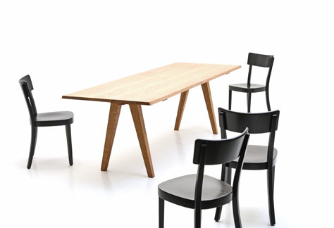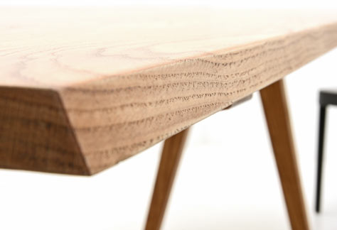 Raffiniertes Detail an der Tischkante: die kurze Seite ist schräg nach hinten geschnitten.
