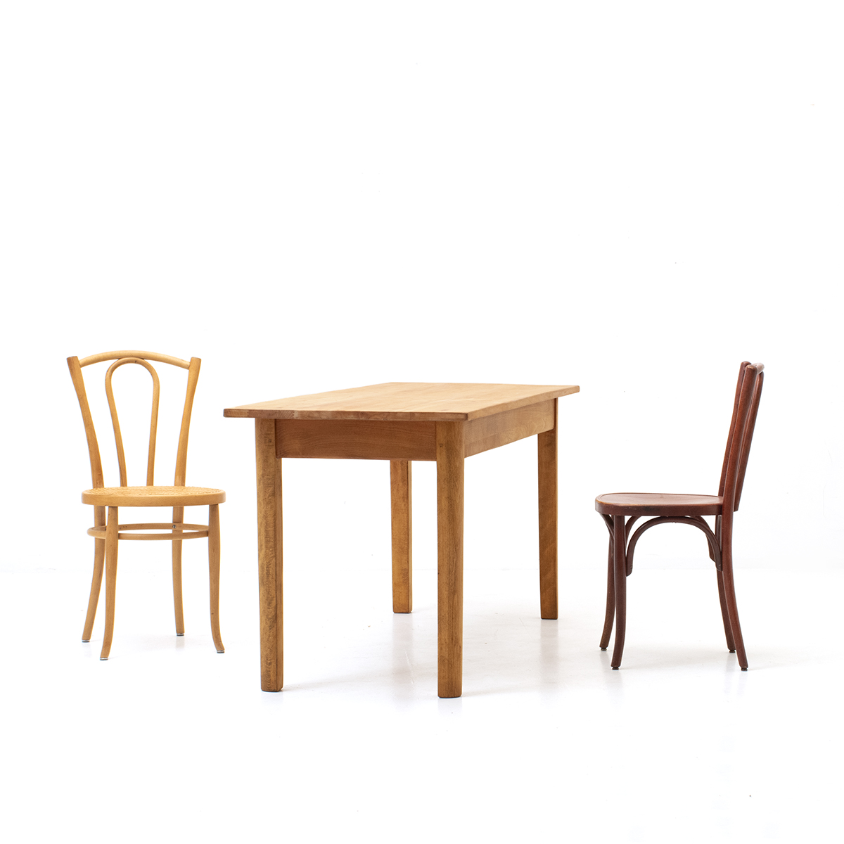 Schmale, geradlinige Buchentische.