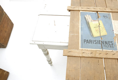 Kleiner Holztisch mit Schublade, Nussbaum, <br> weiss gestrichen. verkauft. <br>