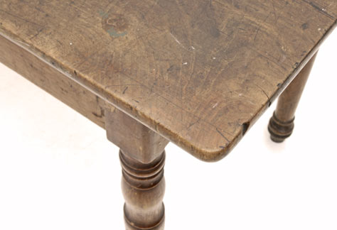 Dunkel patinierte Kirschholzplatte, gedrechselte Beine. Sehr änliches Modell.<br>