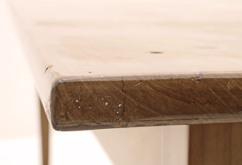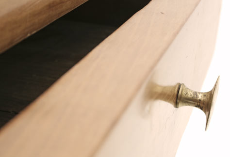 Biedermeier Küchentisch, vor Jahrhundertwende. Kirschbaumholz, feine verjüngende Beine und Schublade mit Messinggriff.