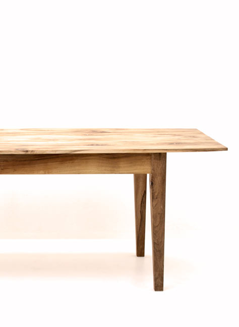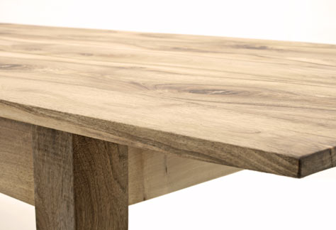 Aus altem Holz neu gefertigte Holztische im Biedermeierstil. <br>