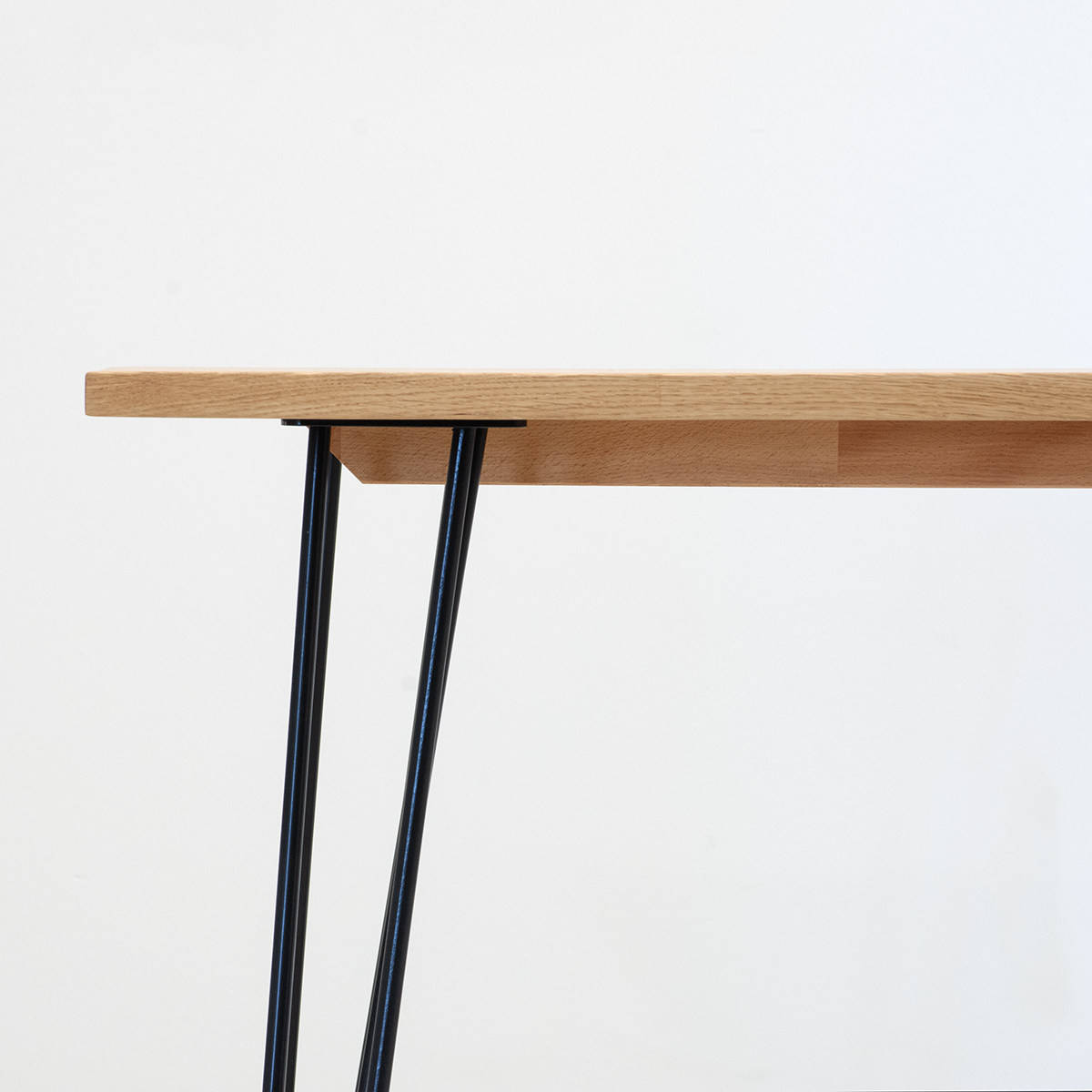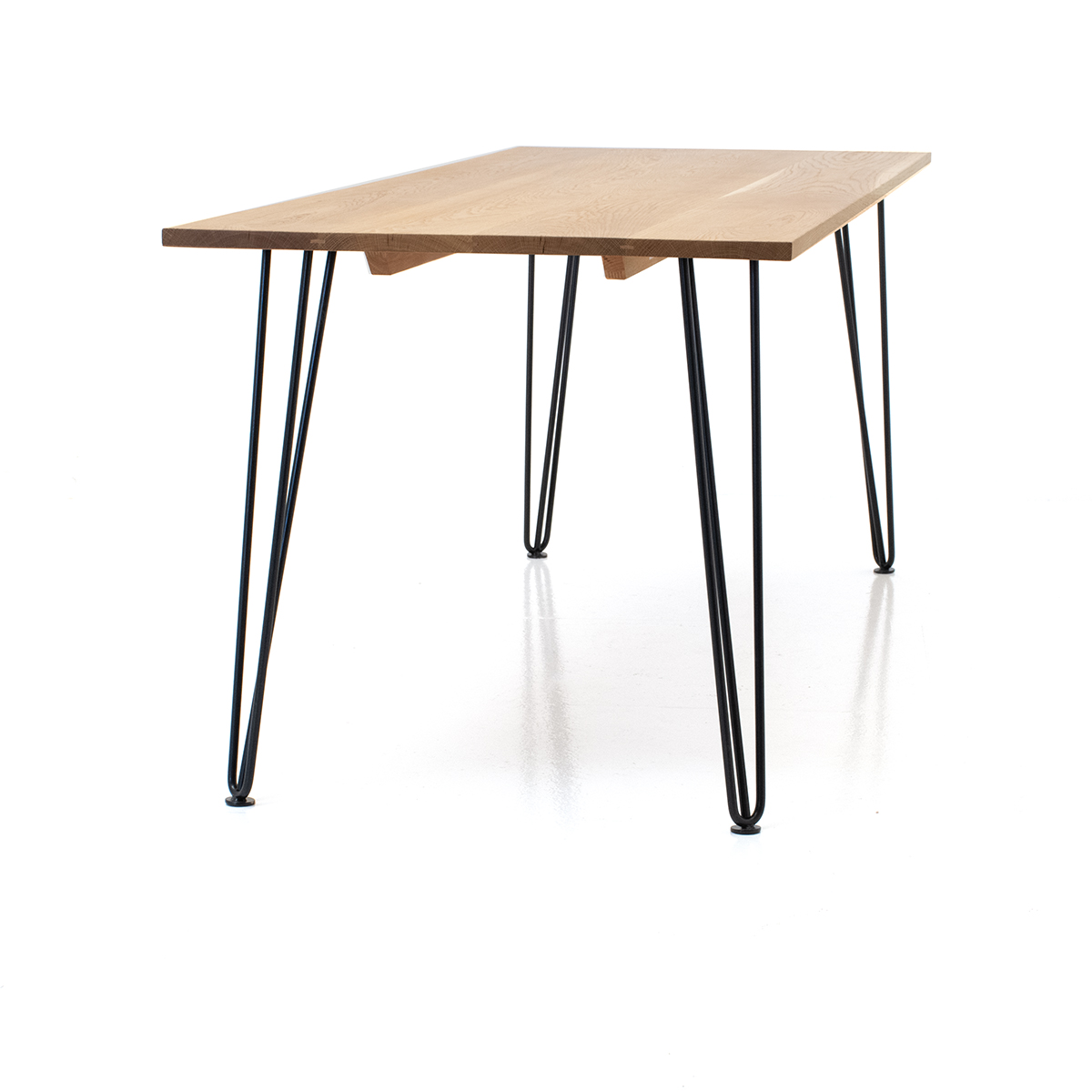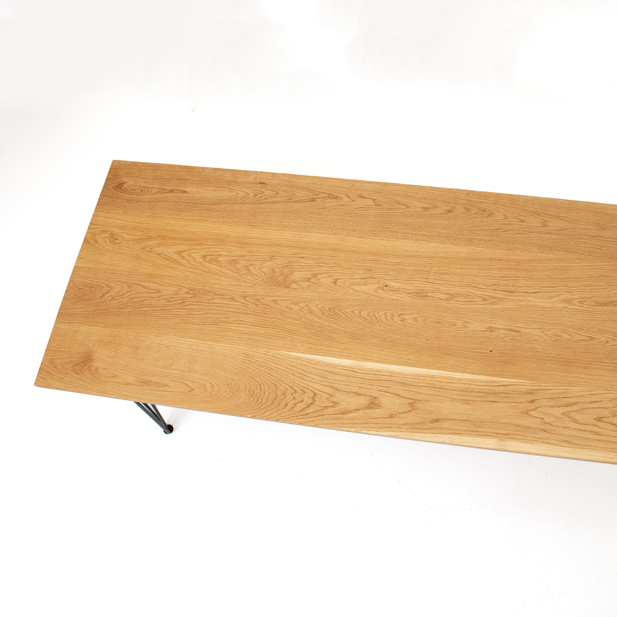 Eleganter Holztisch mit Eichenholz Tischplatte, geölt und schwarzen Hairpin-Legs. In verschiedenen Grössen und auf Wunsch auch in diversen weiteren Ausführungen und Holzarten erhältlich.