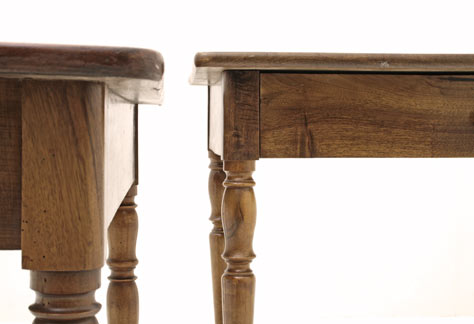 Die kleinen Tische wurden oft als Ess oder Büotische verwendet. Typisch für die Zeit nach der Jahrhundertwende sind die gedrechselten Beine. Meist mit Schubladen ausgestattet, diverse Modelle ab 360.-