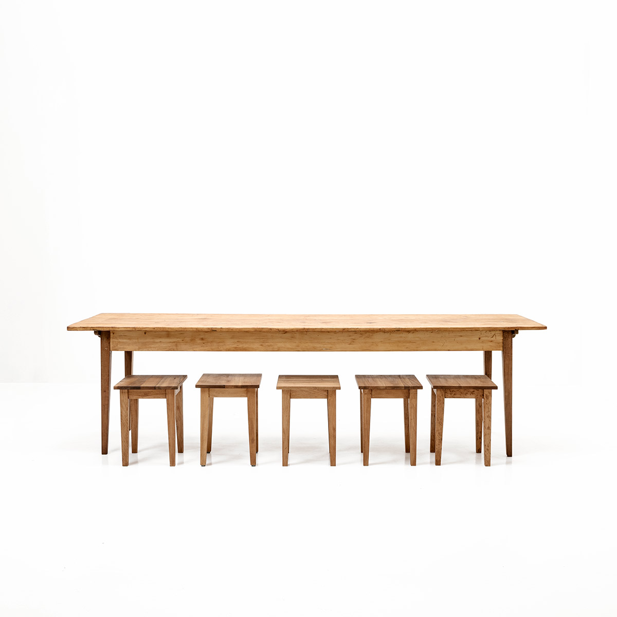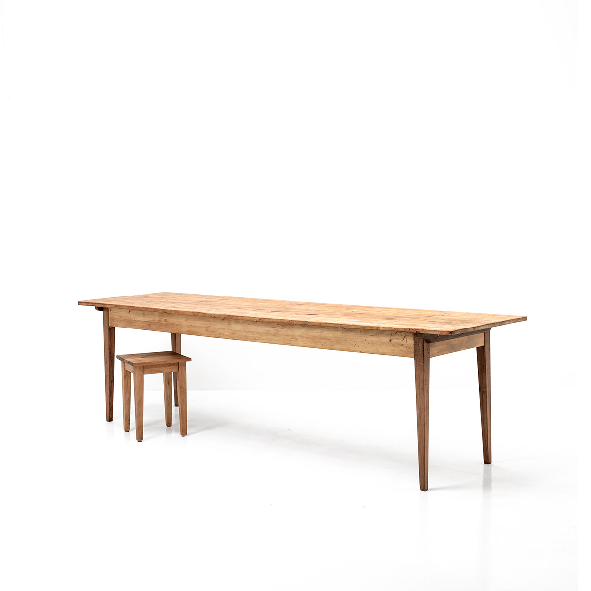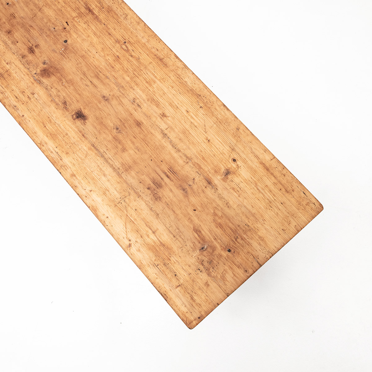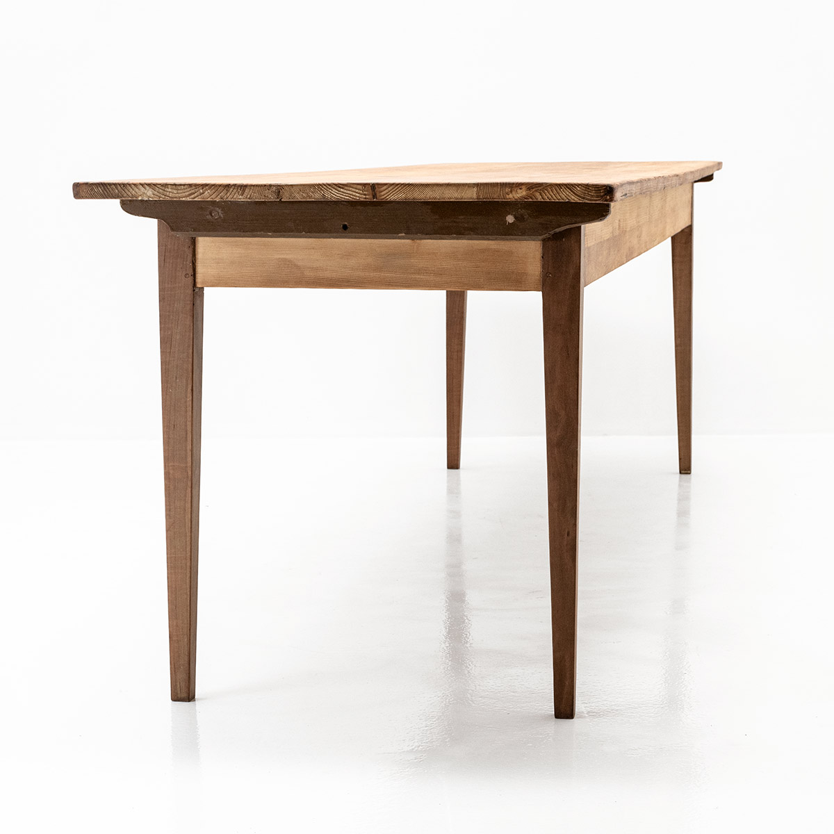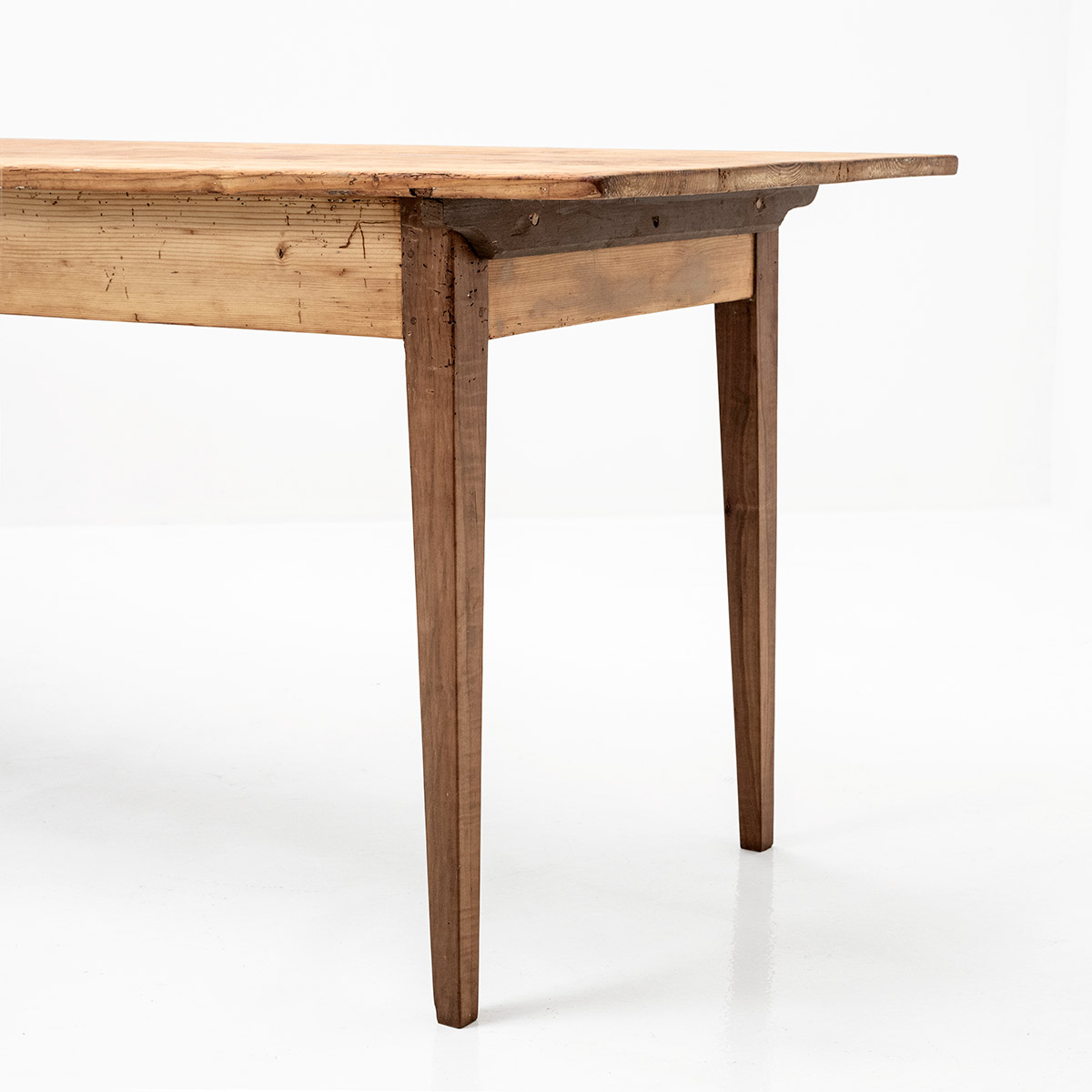 Dieser Biedermeiertisch aus Tannenholz verkörpert die schlichte Eleganz der Epoche. Mit viel Charme und Patina fügt er sich harmonisch in jeden Raum ein. Der Tisch zeigt schöne Gebrauchsspuren der Zeit, die seine Authentizität unterstreichen. Die natürliche Holzfarbe verleiht ihm eine klassische Ästhetik und betonen den unverfälschten Vintage-Charakter.